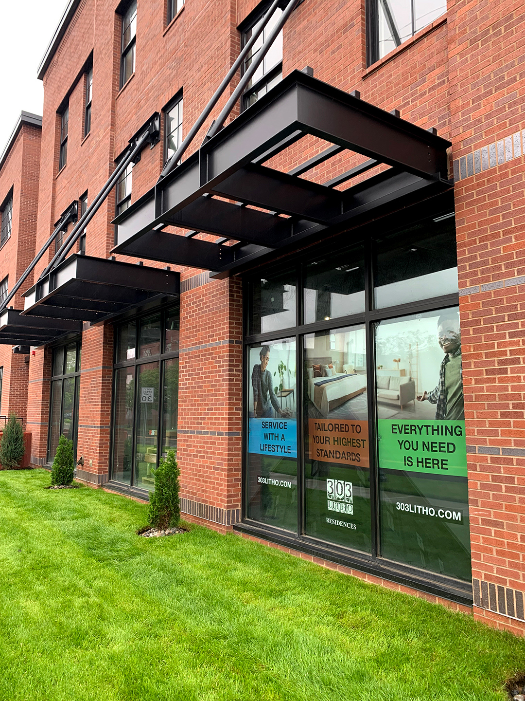 Completed in 2025, this new construction mixed-use project was designed to mimic the historic neighborhood aesthetic of 20th century masonry factory buildings. 303 Litho now houses 27 luxury apartments on the upper 2 floors and and 4 commercial tenants on the first floor.